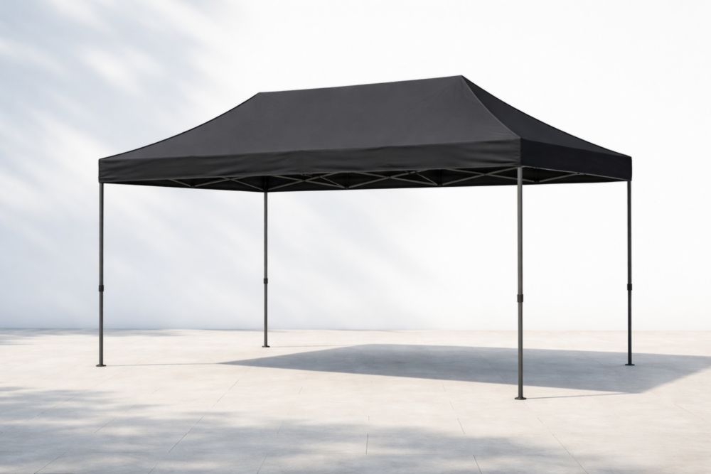 Gazebo Nero Struttura in Acciaio Tessuto in Poliestere