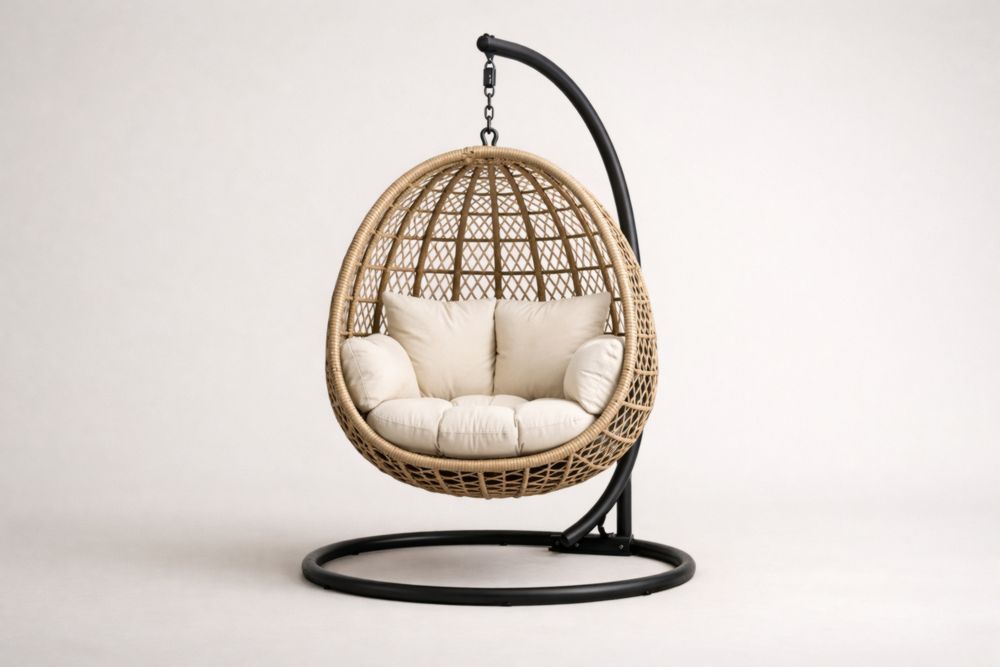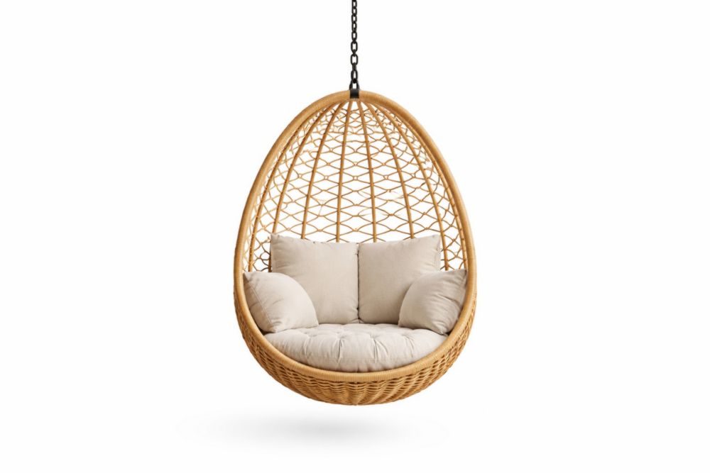 Sedia Sospesa in Rattan con Cuscini Beige