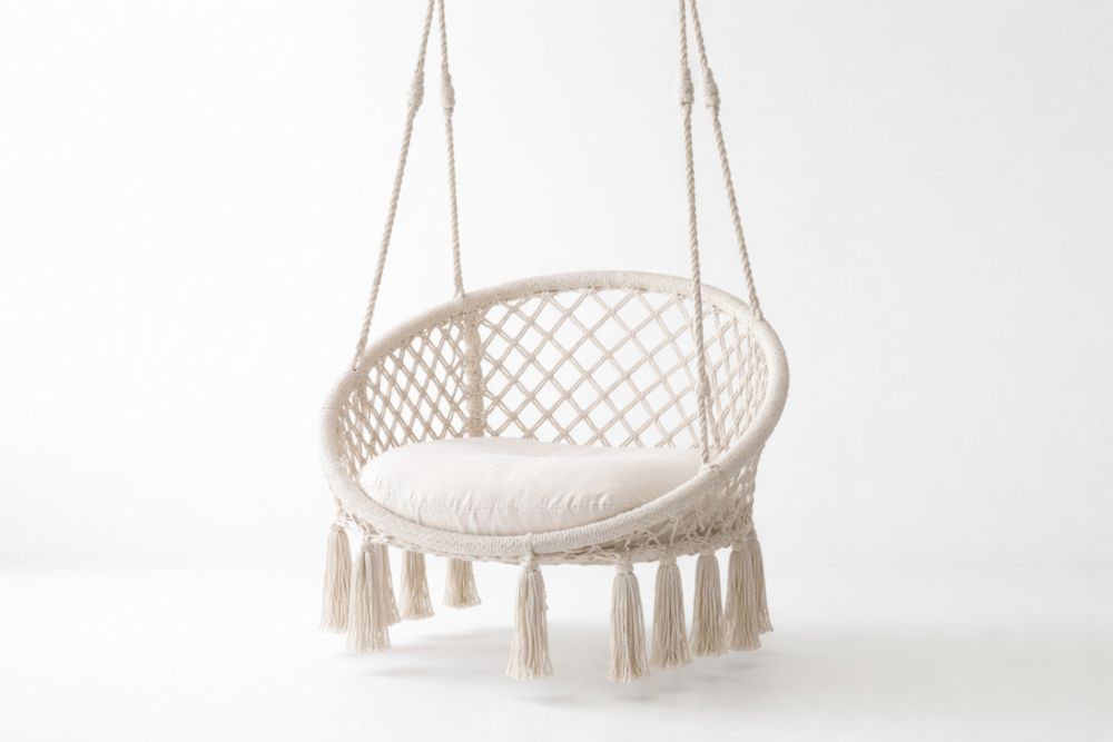 Sedia Sospesa in Corda con Cuscino Bianco