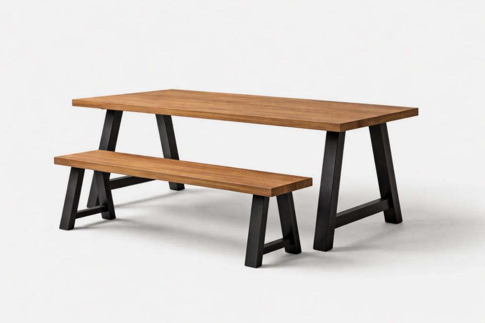 Set pranzo in Legno massello e acciaio con tavolo e panca
